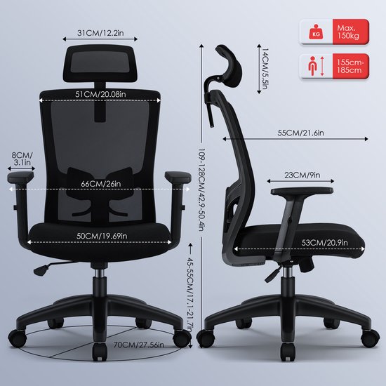 Our chair provides a versatile headrest, a supportive backrest, and an adjustable lumbar support for personalized comfort.